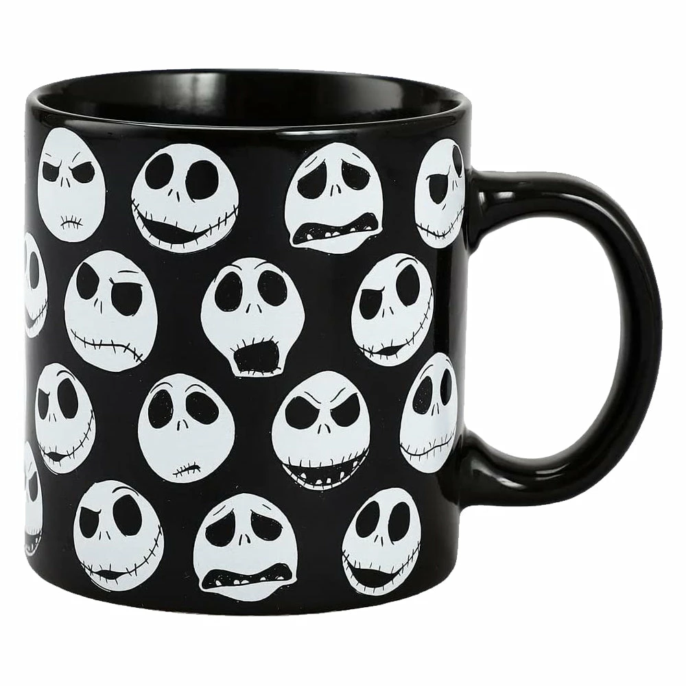 This 16oz Jack Skellington Facial Expressions mug featuring the many emotions of Jack Skellington covering the entire mug.